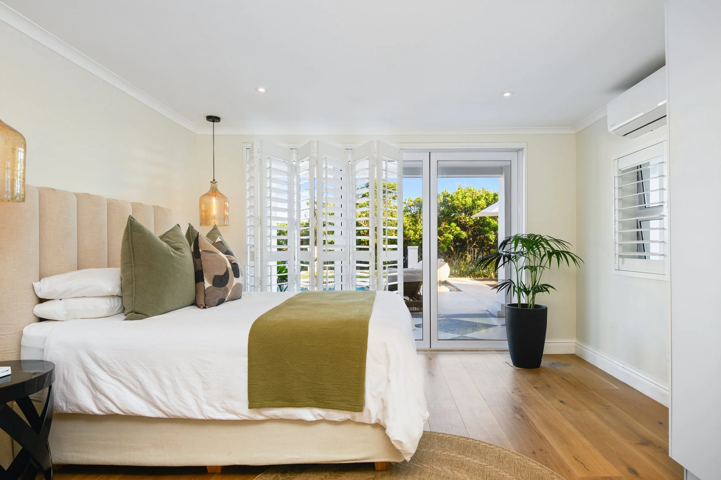 The room has a large en-suite bathroom with a shower, heated towel rail and beautiful finishes. This light and breezy room is a large spacious room with an overhead fan and ducted air conditioning. The balcony area has a table and the patio a lounger where you can enjoy some afternoon naps or breakfast in privacy.